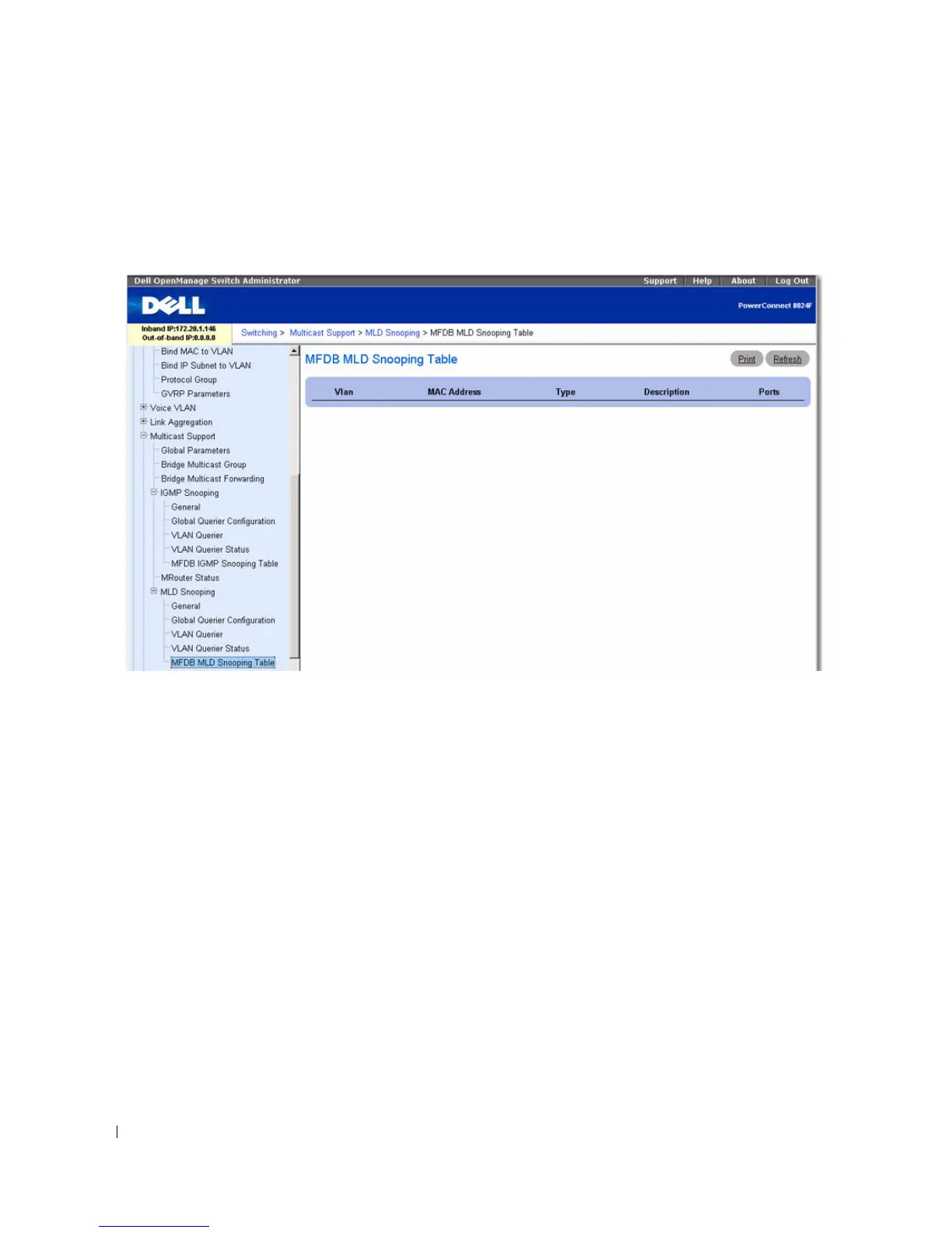 MFDB MLD Snooping Table in the tree view.