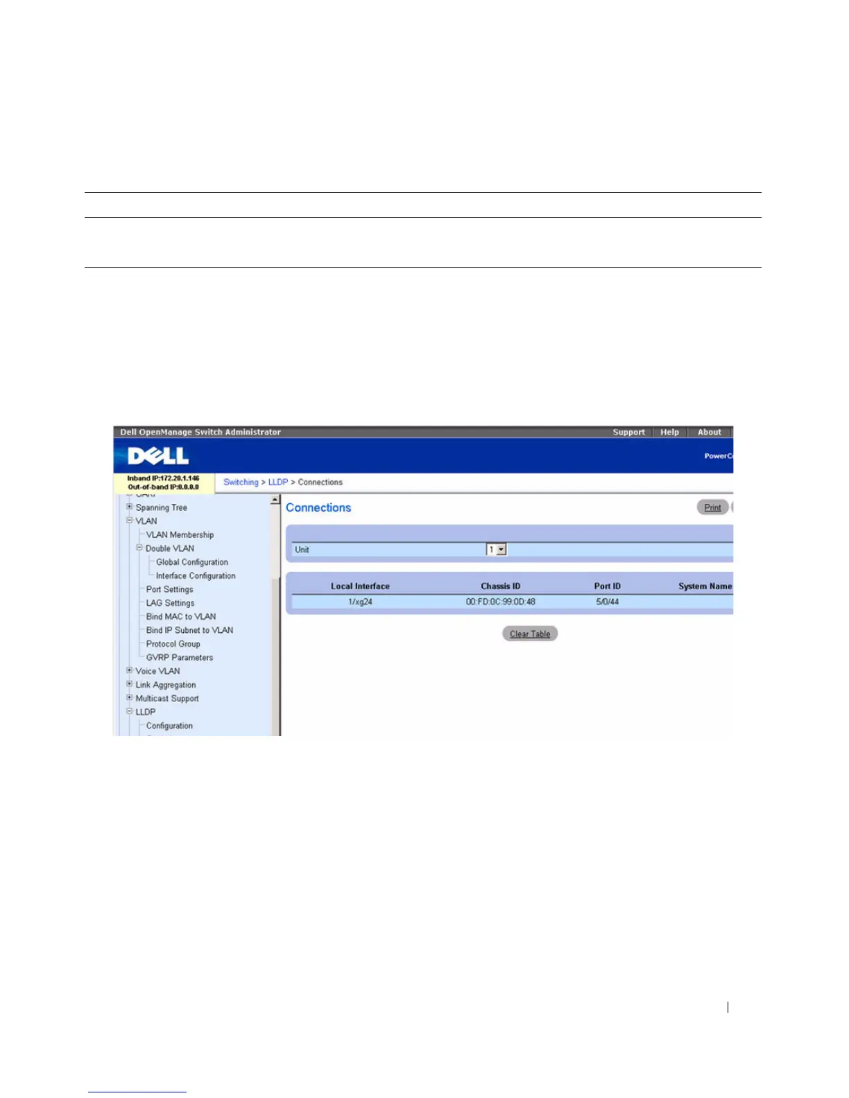 Use the Clear Table button to delete all information from the LLDP Connections table.