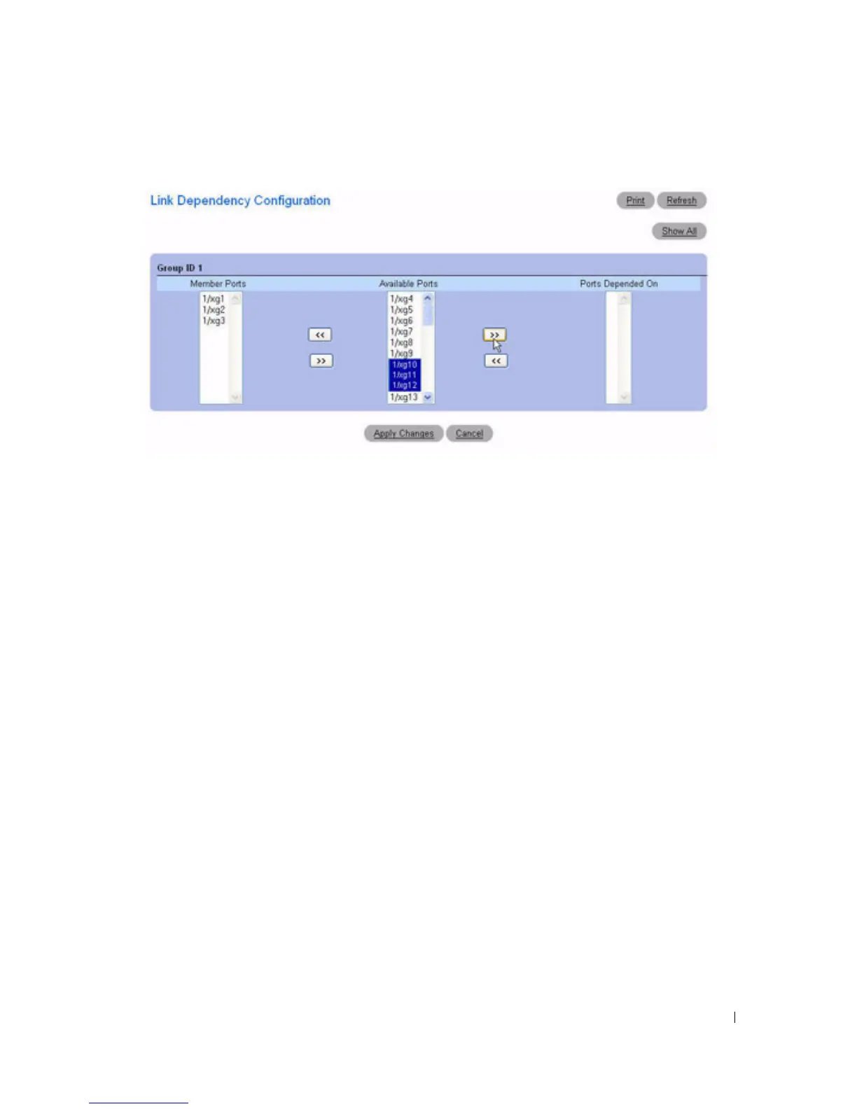 The all ports are removed from the Link Dependency group, and the device is updated.
