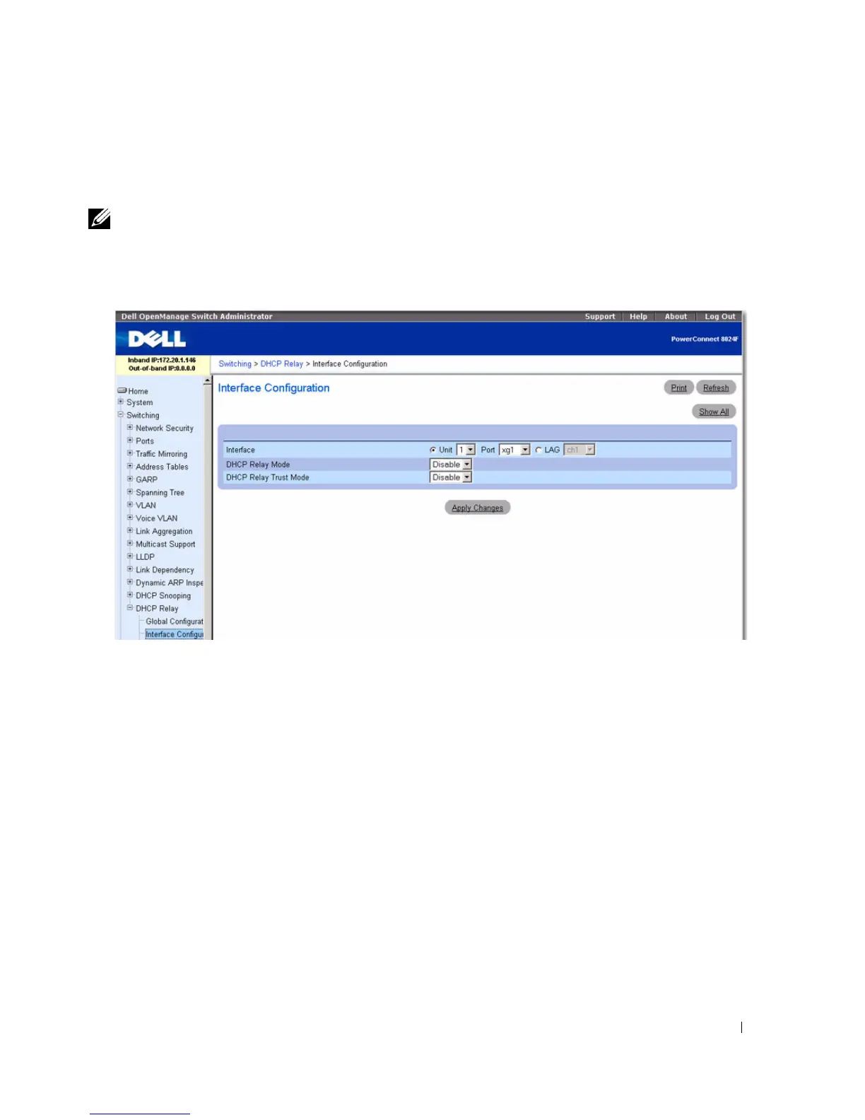NOTE: L2 DHCP relay must also be enabled globally on the switch.