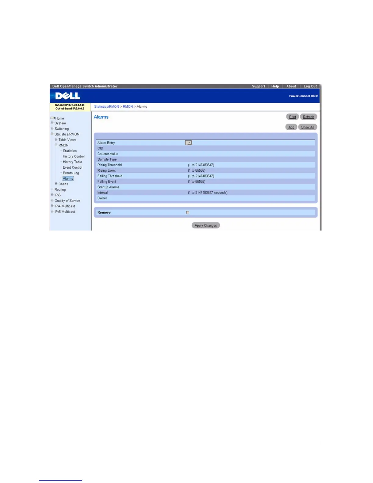 selected, an SNMP trap is generated and reported through the Trap mechanism. The trap can be saved