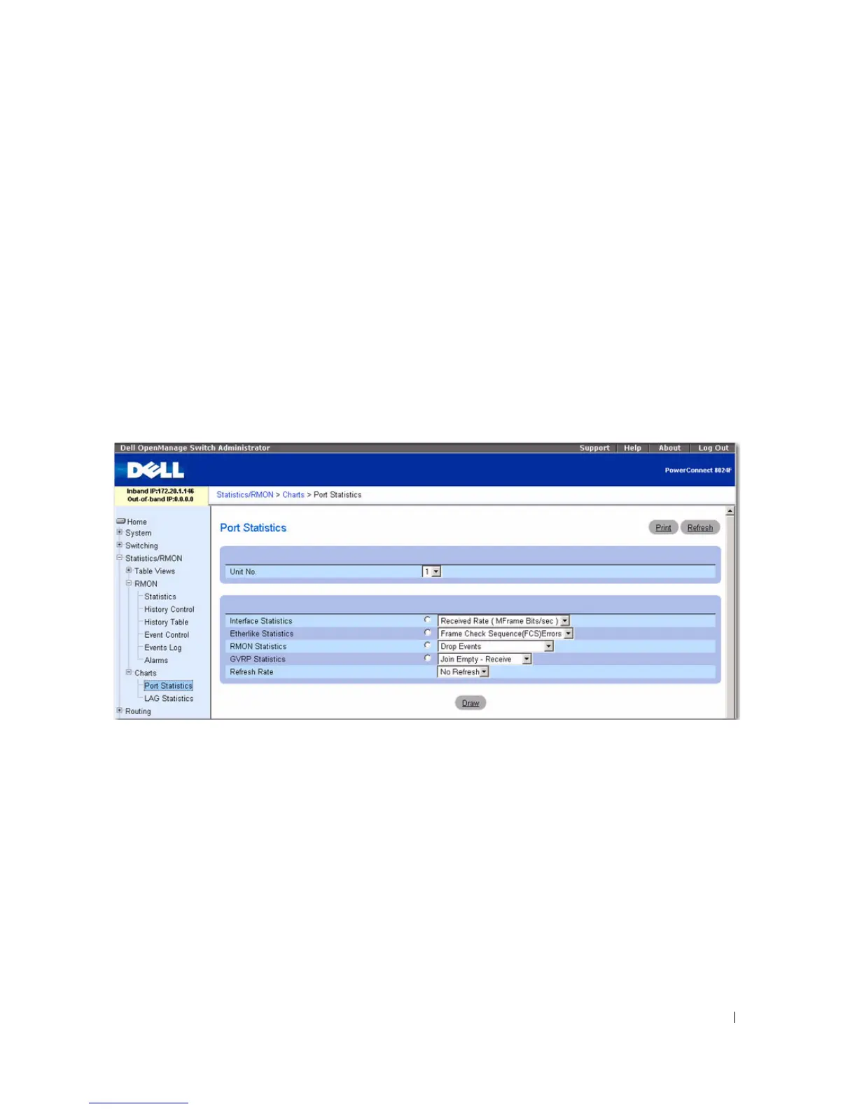 — Selects RMON Statistics when clicked, and specifies the type of RMON statistics