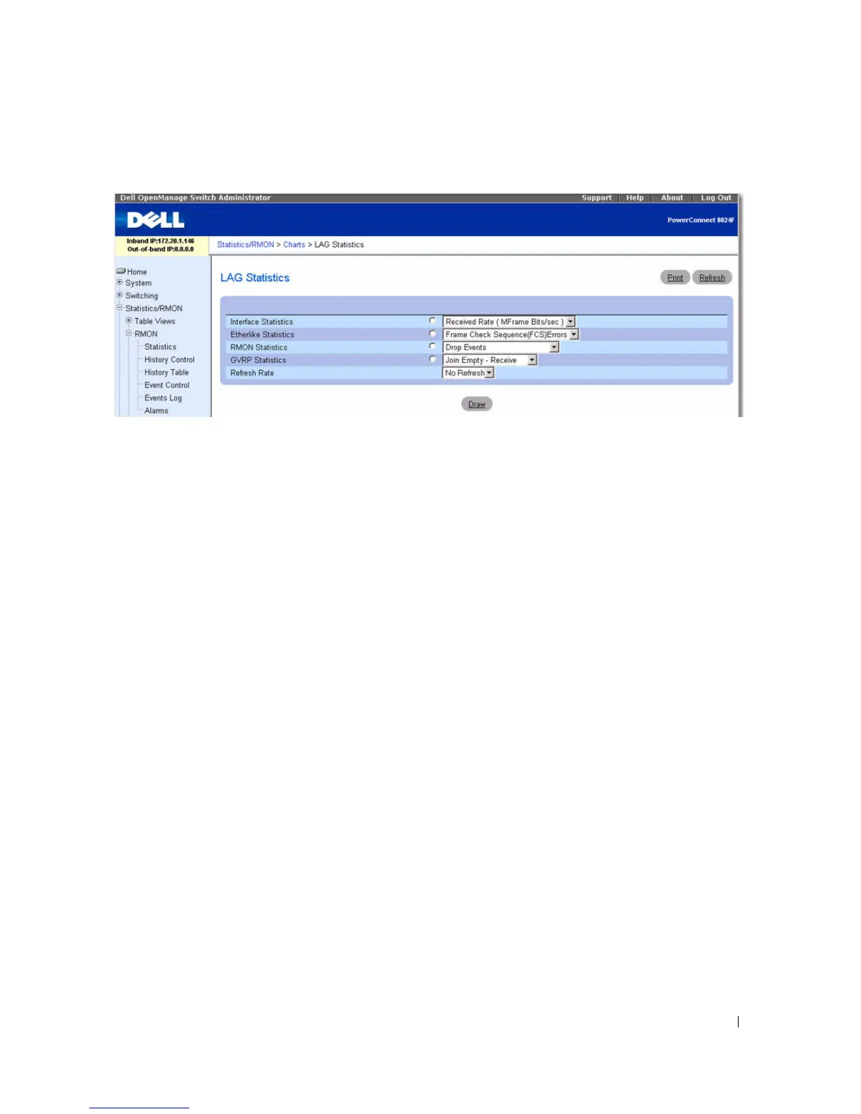 — Selects RMON Statistics when clicked, and specifies the type of RMON statistics