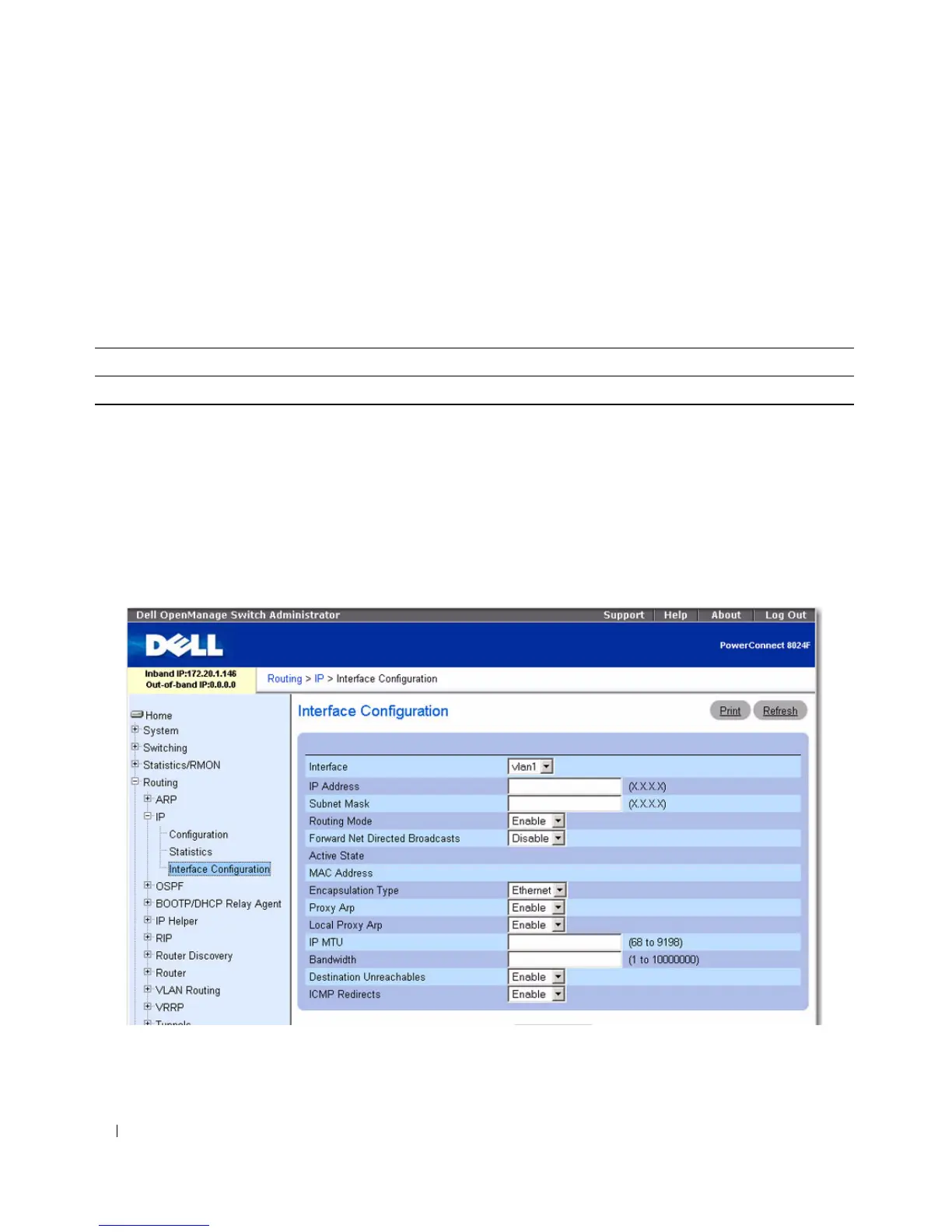 configuration includes the ability to configure the bandwidth, Destination Unreachable messages, and