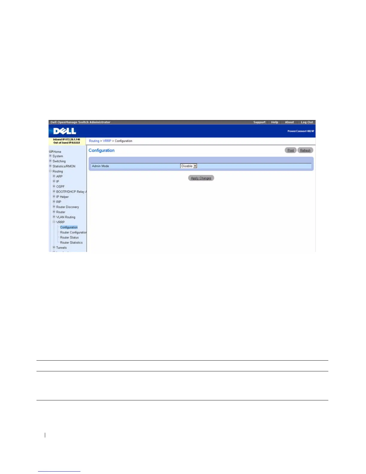 The VRRP Configuration page contains the following field: