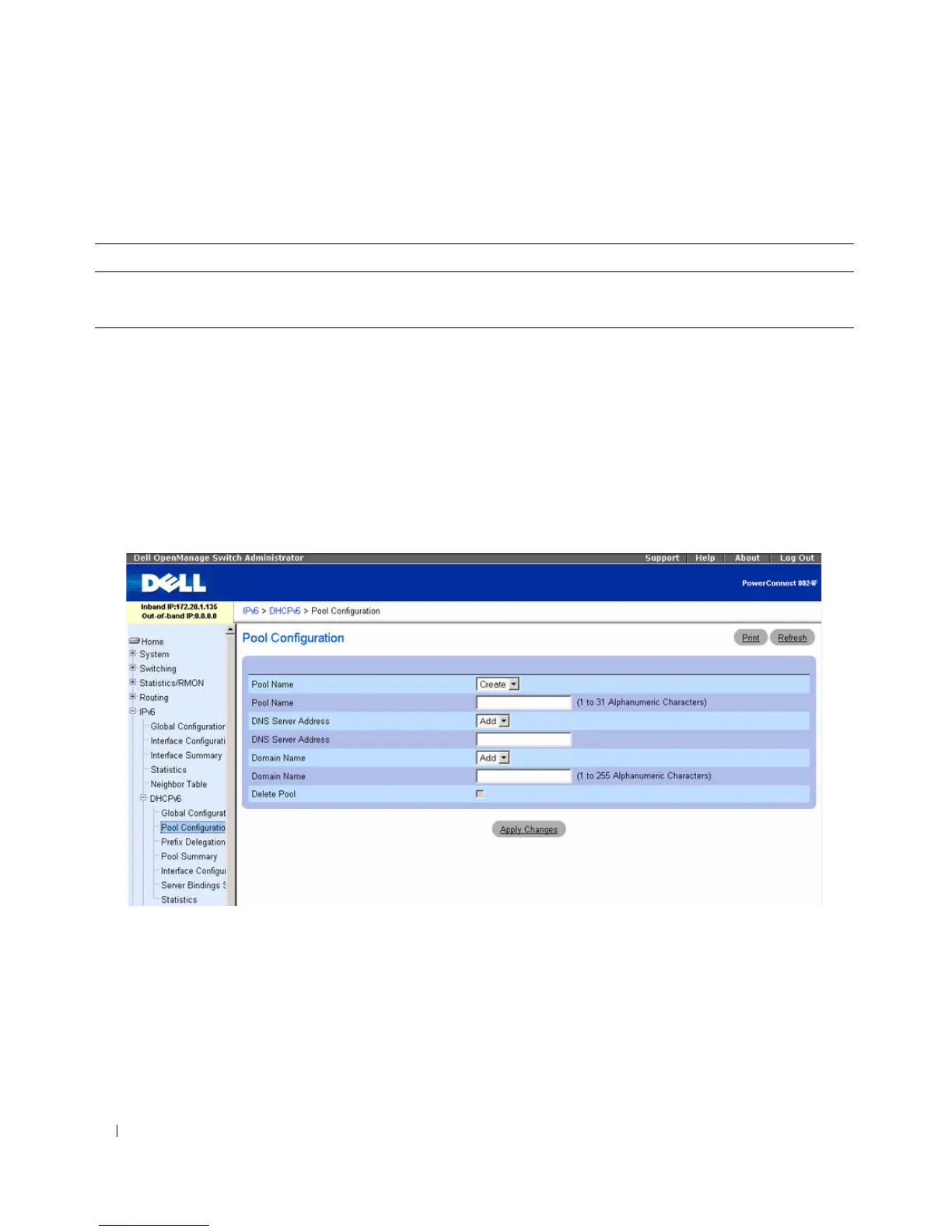 you set up. The pool is identified with a pool name, and contains IPv6 addresses and domain names of
