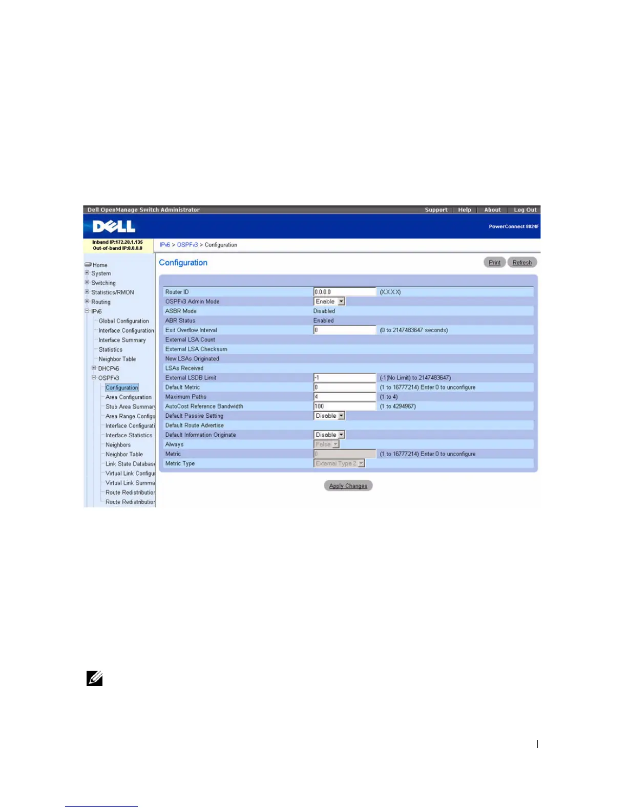 NOTE: Once OSPFv3 is initialized on the router, it remains initialized until the router is reset.
