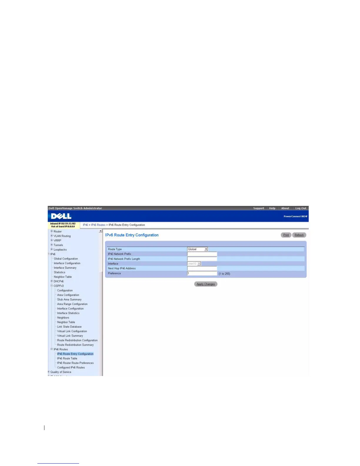The IPv6 Routes menu page contains links to web pages that define and display IPv6 Routes parameters