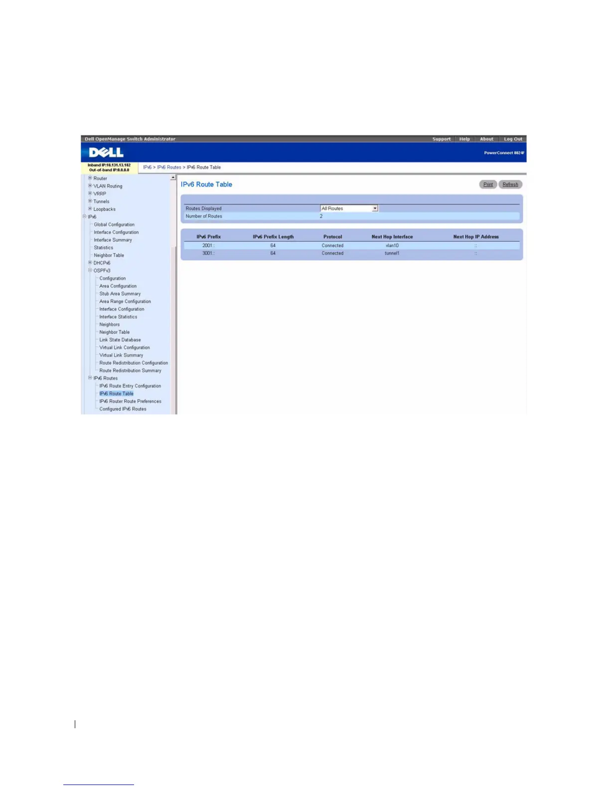 — Displays the Next Hop IPv6 Address for the Active Route.