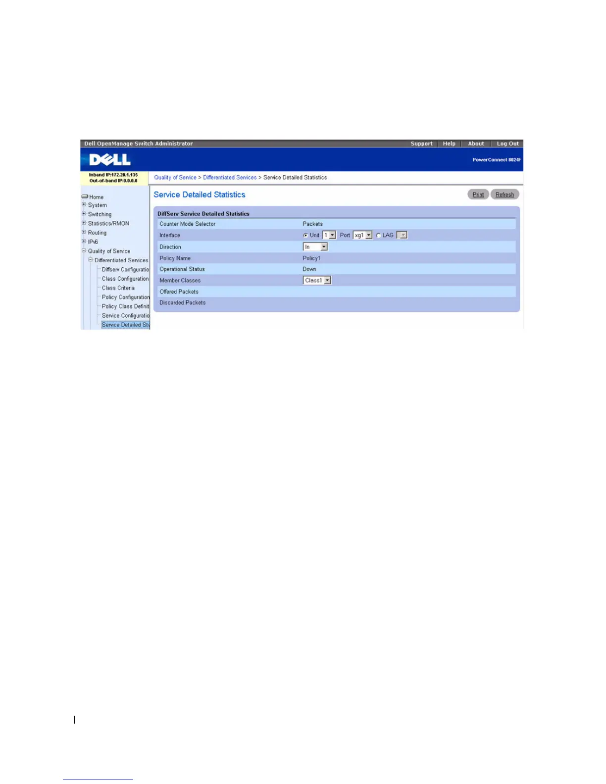 The Diffserv Service Detailed Statistics page contains the following fields: