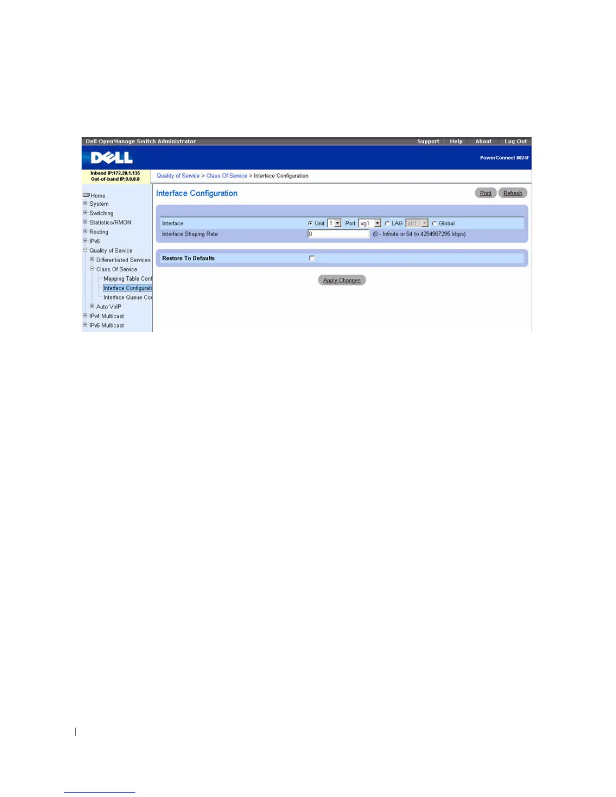 — Restores the default interface shaping rate to the selected interfaces when