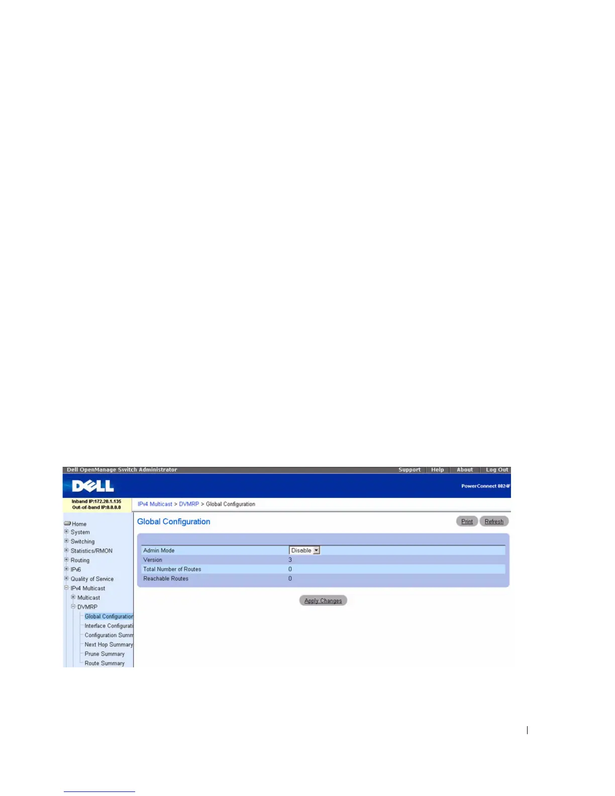 The DVMRP menu page contains links to web pages that define and display DVMRP parameters and