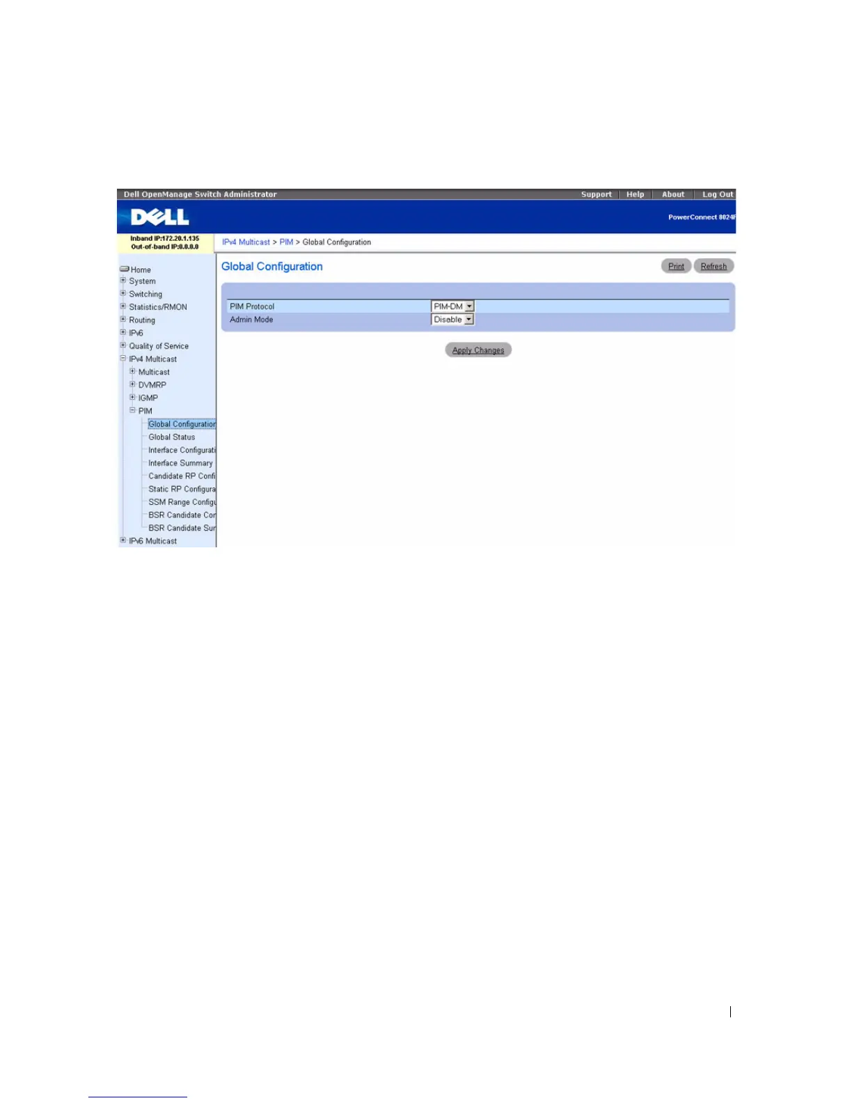 — Select PIM-DM or PIM-SM. Only one PIM protocol can be enabled on the switch at