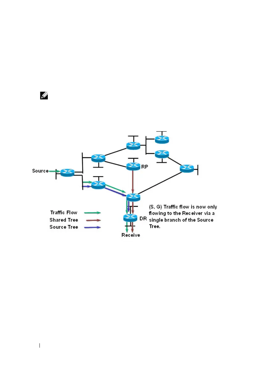 As a result of the SPT-Switchover, (S, G) traffic is now flowing only from
