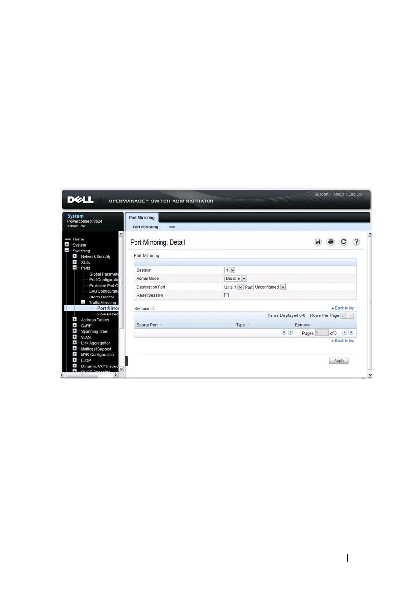 Use the Port Mirroring page to create a mirroring session in which all traffic
