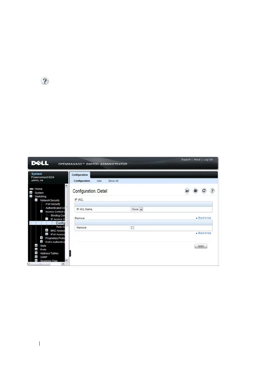 To display the IP ACL Configuration page, click Switching