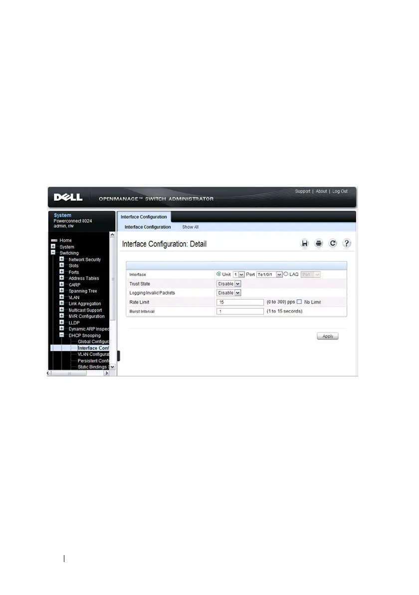 Use the DHCP Snooping Interface Configuration page to configure the