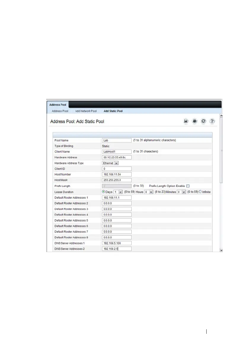 In Figure 32-7, the Static pool name is Lab, and the name of the client in