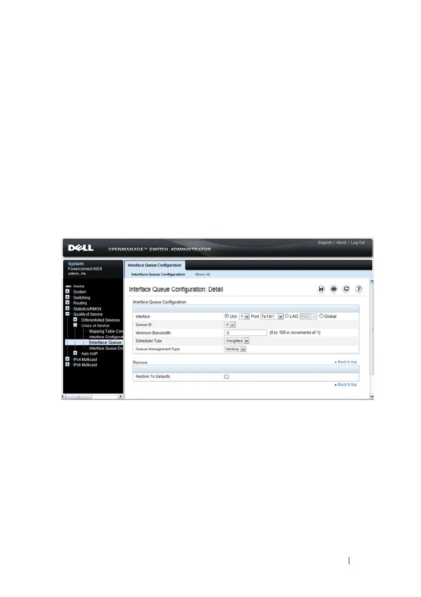 Interface Queue Configuration page, click Quality of Service