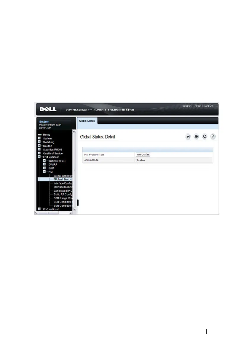 page to view the administrative status of PIM-DM or