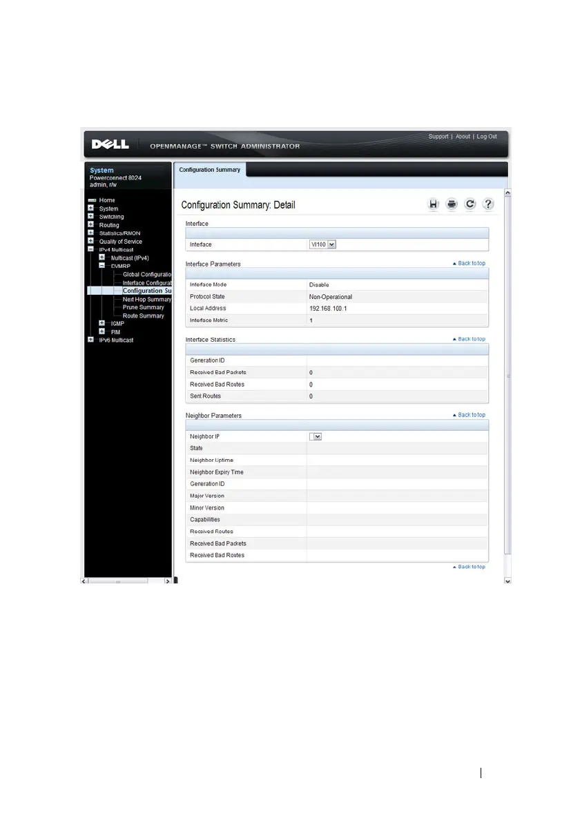 Dell PowerConnect 8132 - DVMRP Next Hop Summary