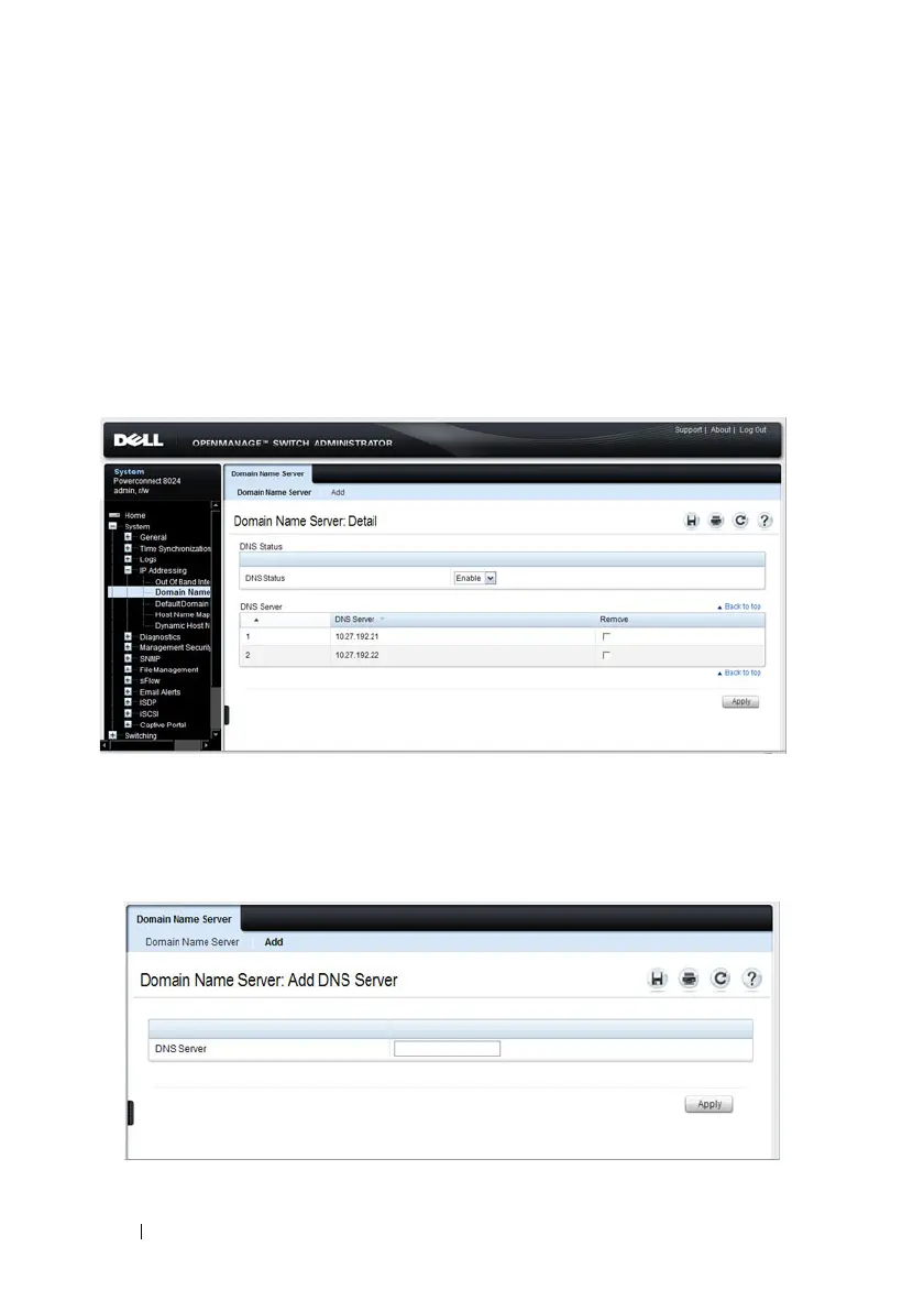 Use the Domain Name Server page to configure the IP address of the DNS