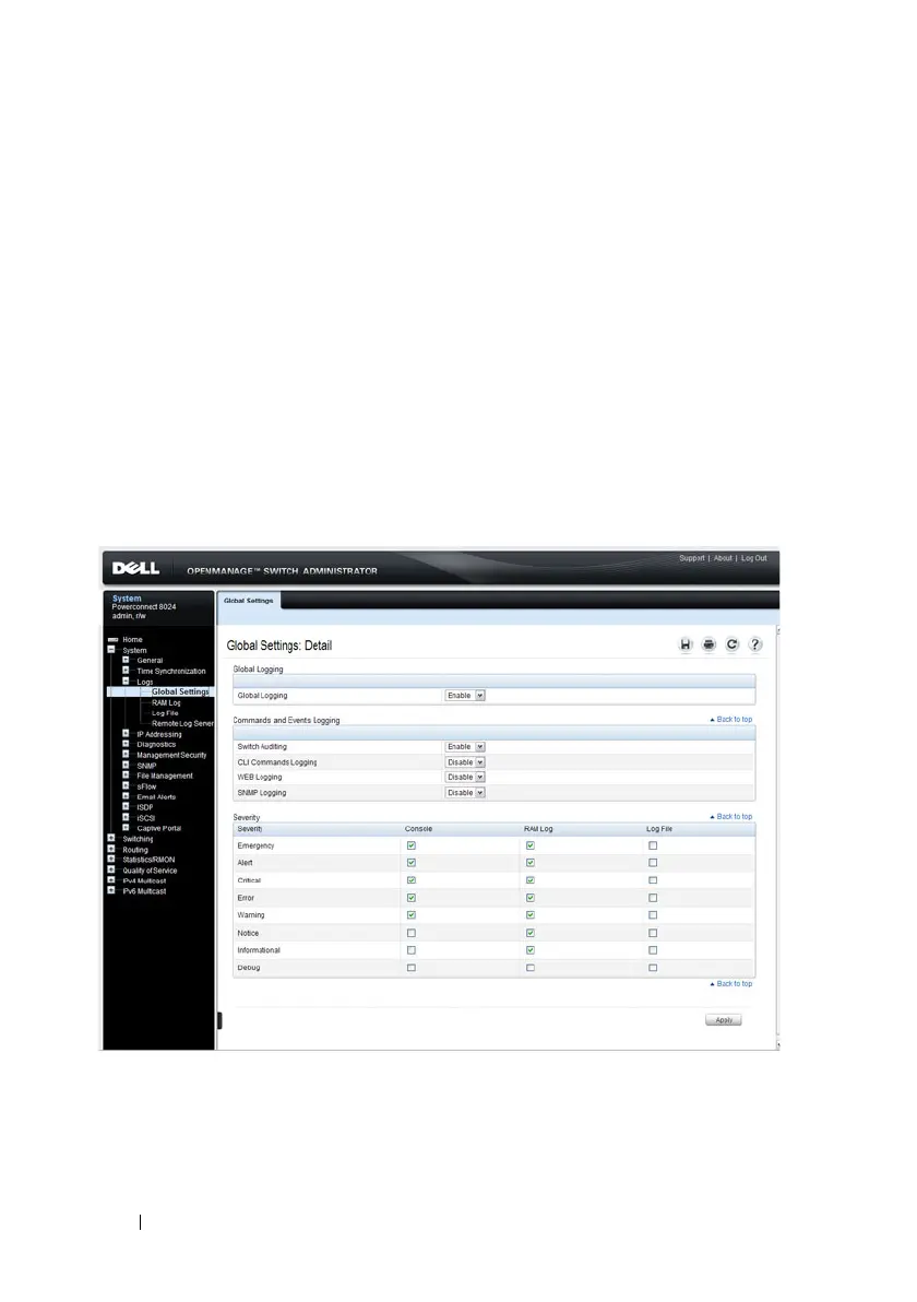 console, RAM log, or flash log file, clear all check boxes in the Severity
