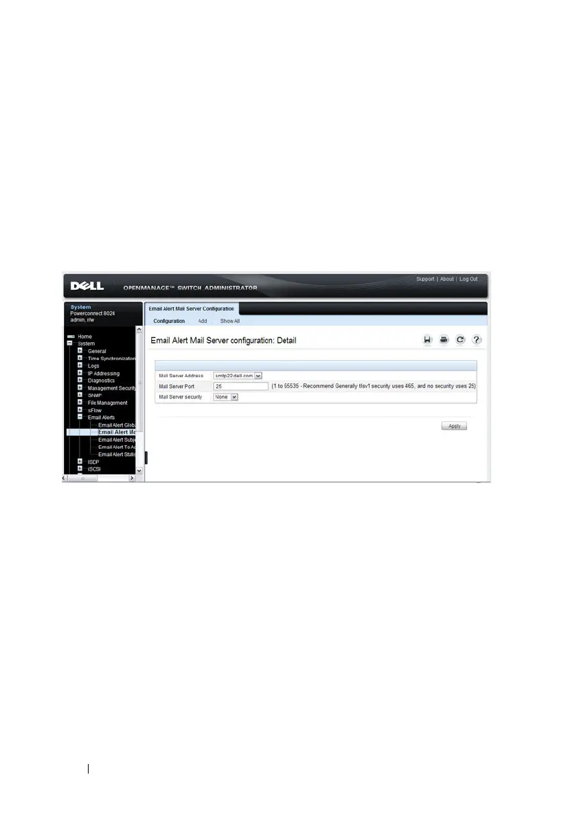 To display the Email Alert Mail Server Configuration page, click System
