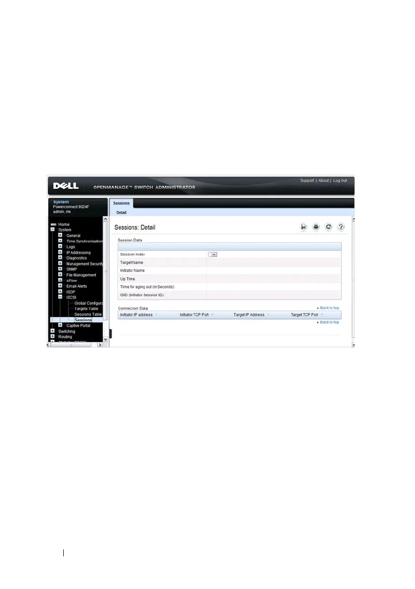 To access the Sessions Detailed page, click System → iSCSI → Sessions