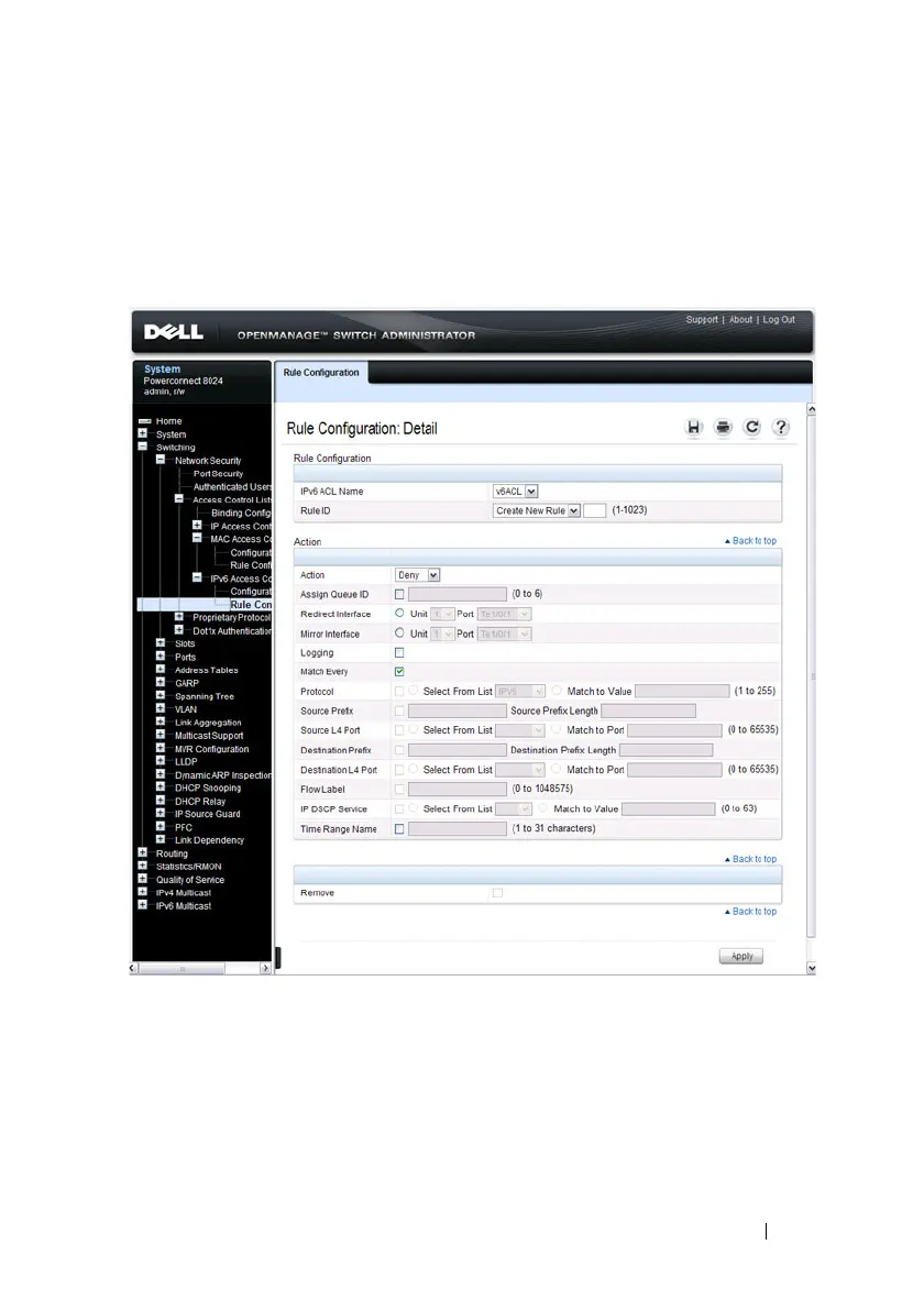 To display the IPv6 ACL Rule Configuration page, click Switching