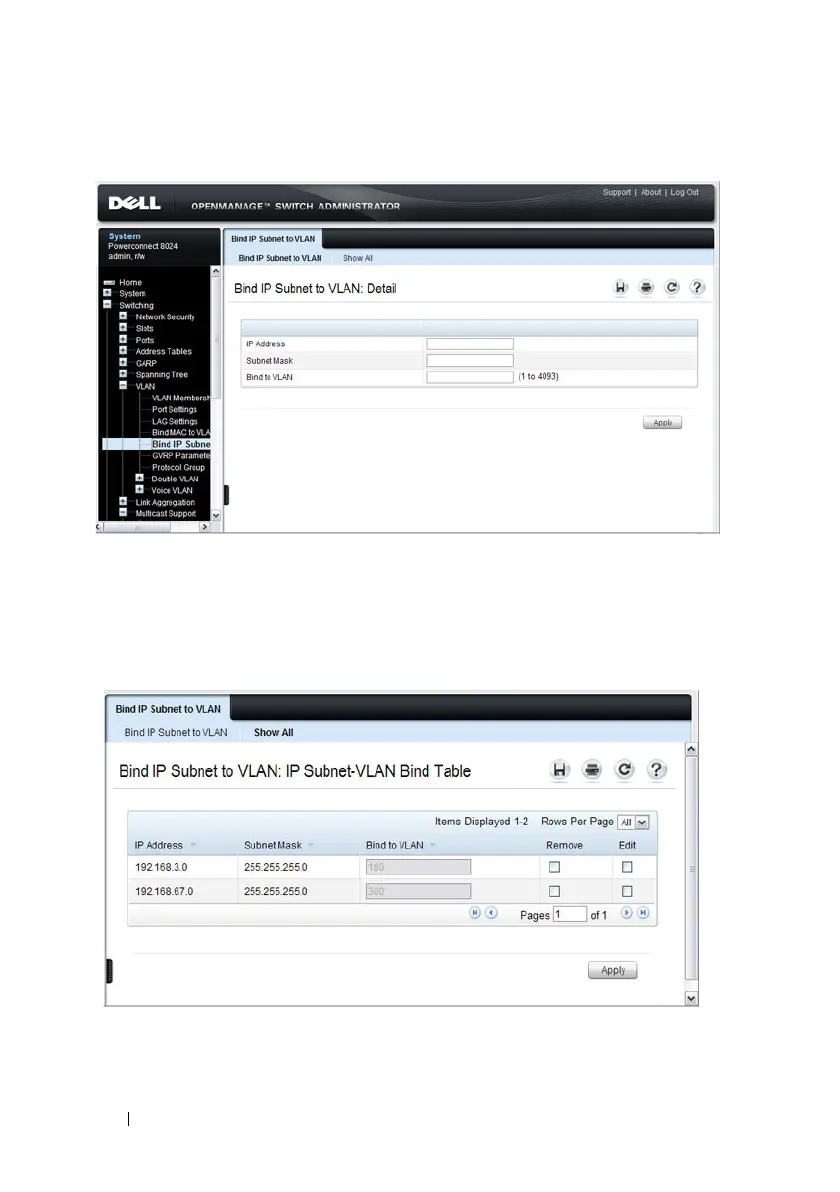 From the Bind IP Subnet to VLAN page, click Show All to see the IP subnets
