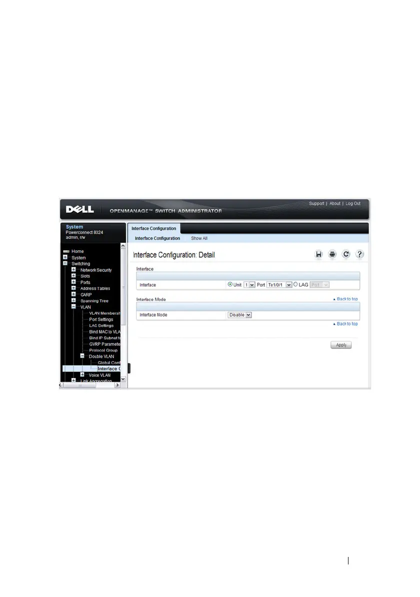 To display the Double VLAN Interface Configuration page, click Switching