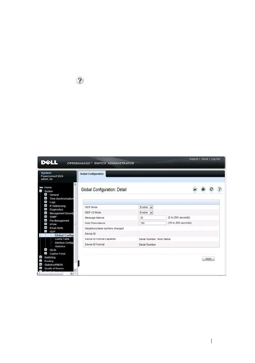 To access the ISDP Global Configuration page, click System