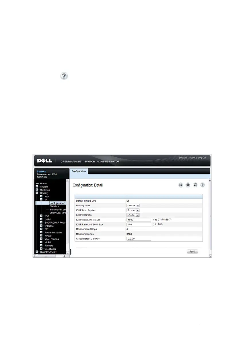 Administrator pages for configuring and monitoring IPv4 routing features on