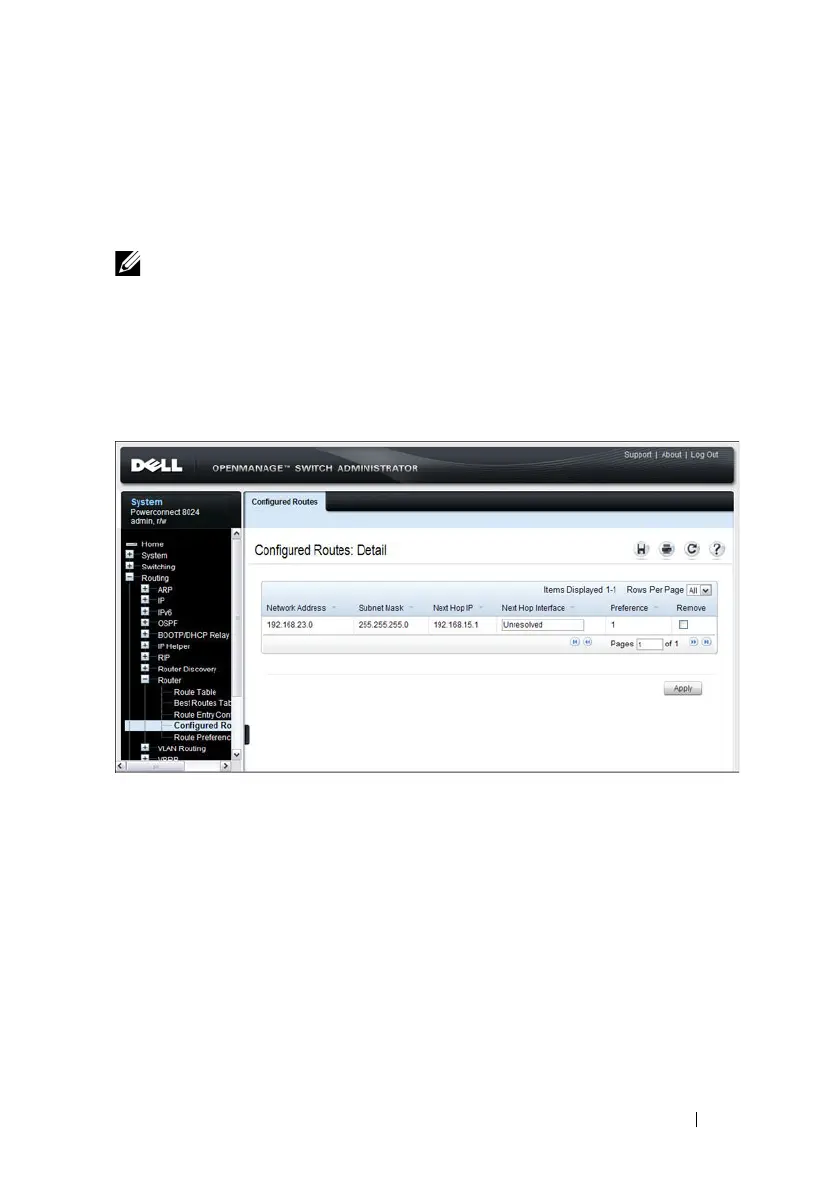 NOTE: For a static reject route, the next hop interface value is Null0. Packets to