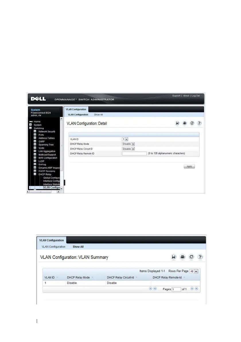 Use this page to enable and configure DHCP Relay on specific VLANs.