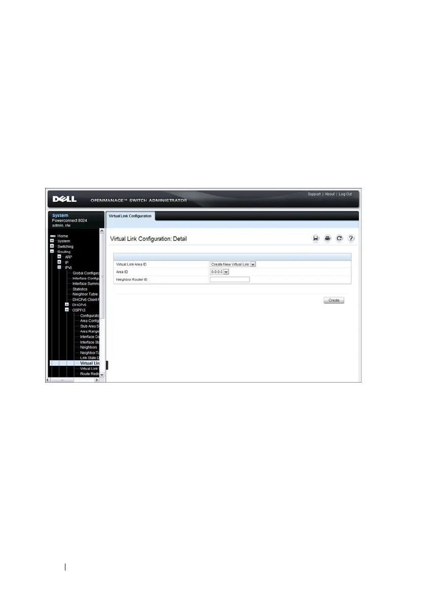 existing virtual link. To display this page, a valid OSPFv3 area must be
