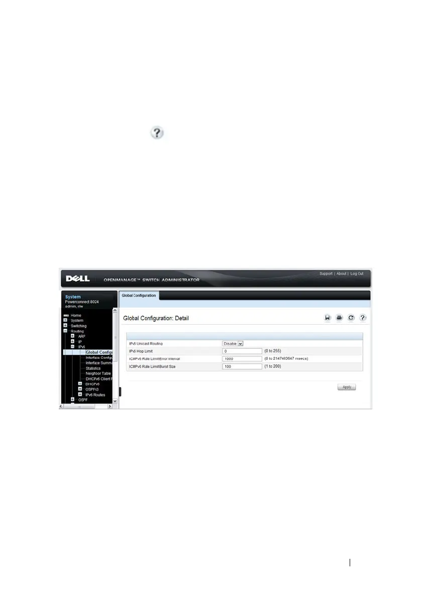 Administrator pages for configuring and monitoring IPv6 unicast routing