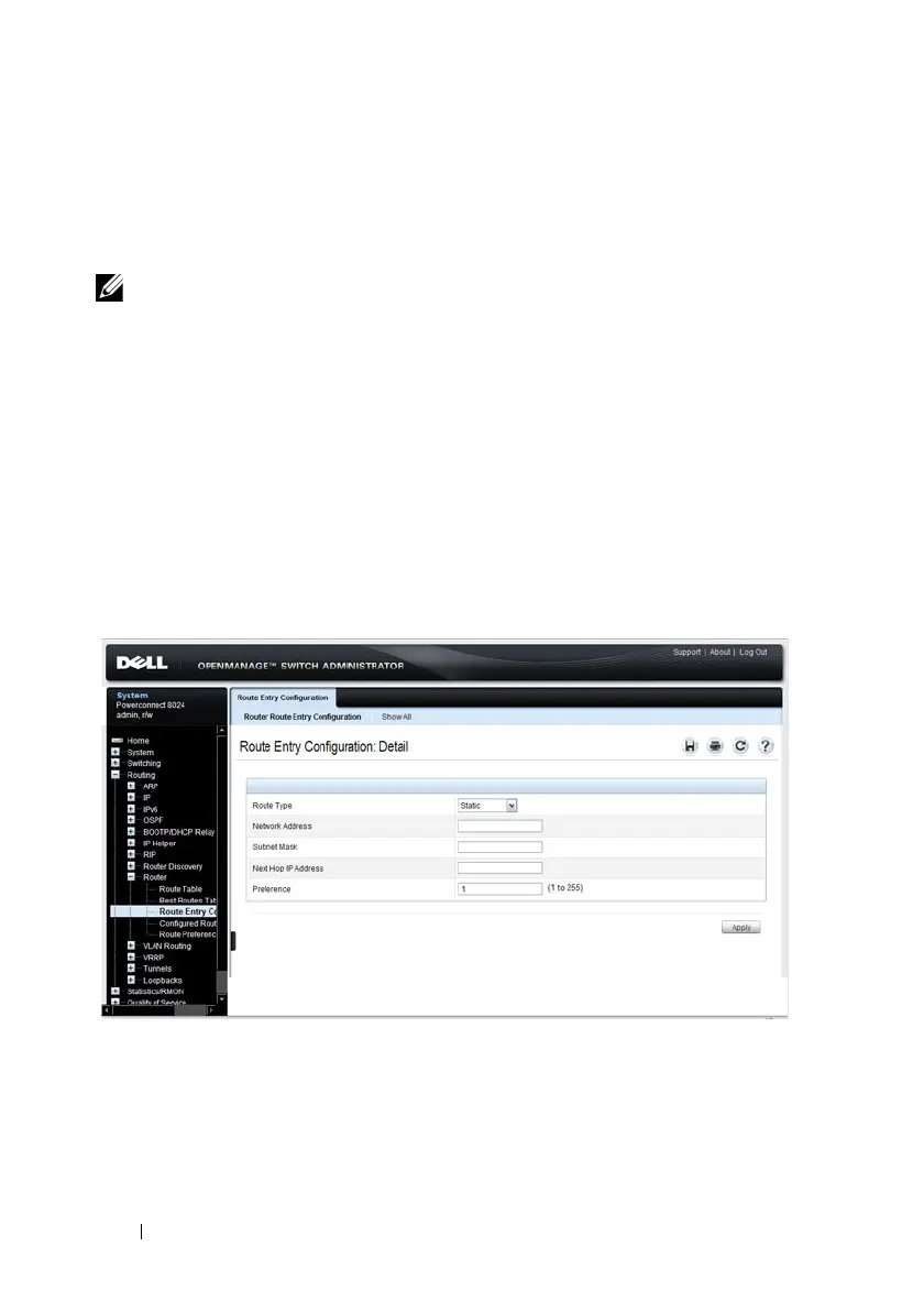 Dell PowerConnect 8132F - Route Entry Configuration (Switch Default Gateway)
