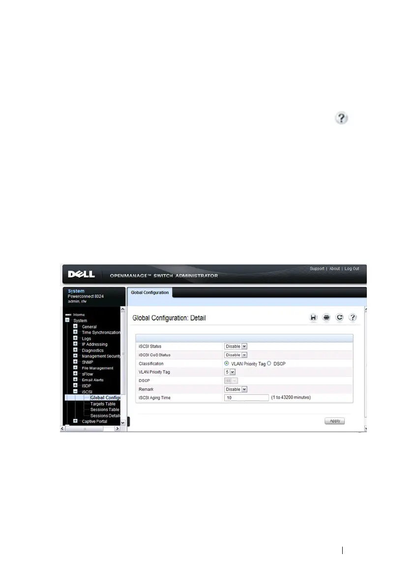 Use the Global Configuration page to allow the switch to snoop for iSCSI