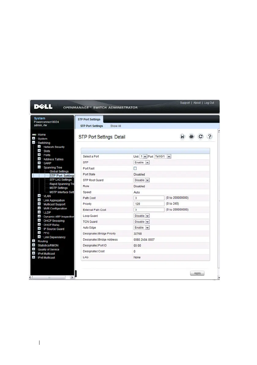 Use the STP Port Settings page to assign STP properties to individual ports.