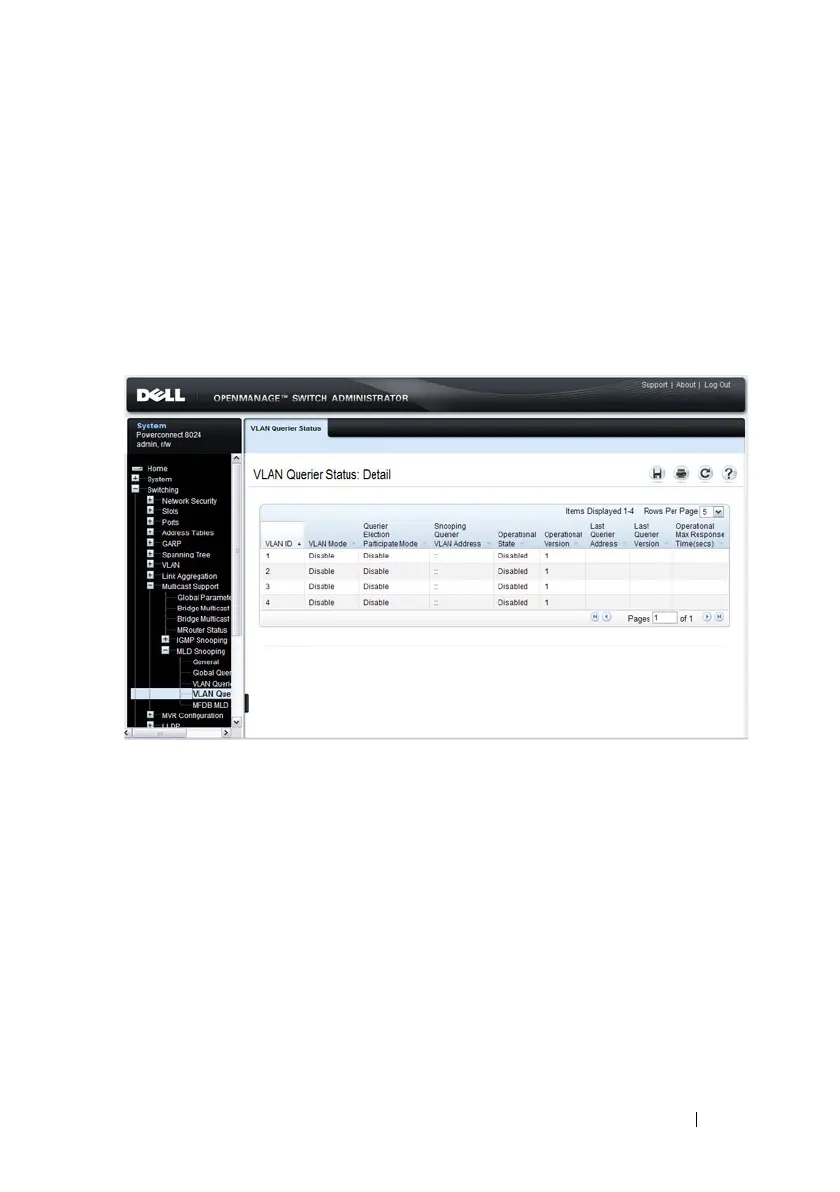 Use the VLAN Querier Status page to view the MLD snooping querier