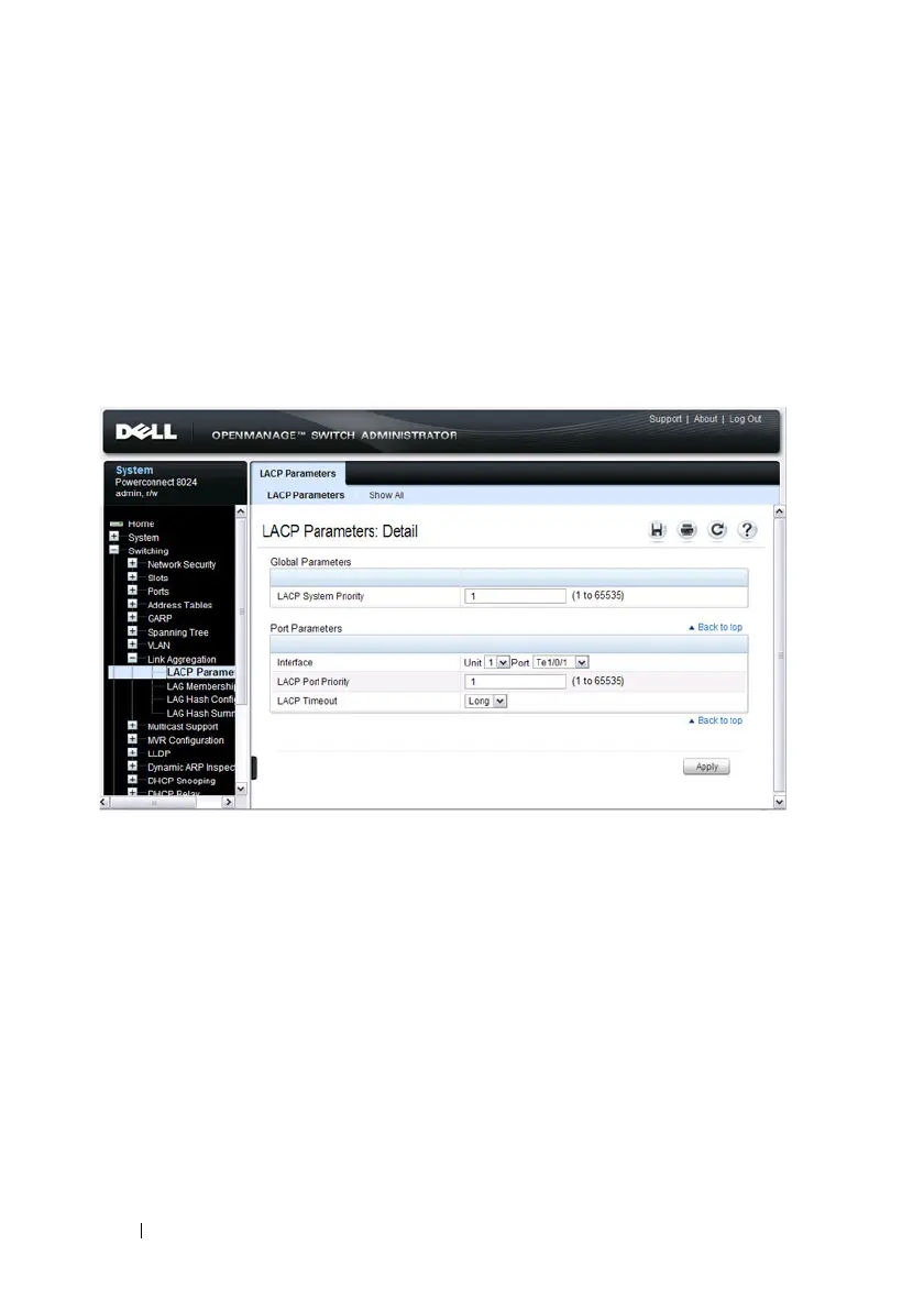 exchanges of LACP PDUs. Use the LACP Parameters page to configure