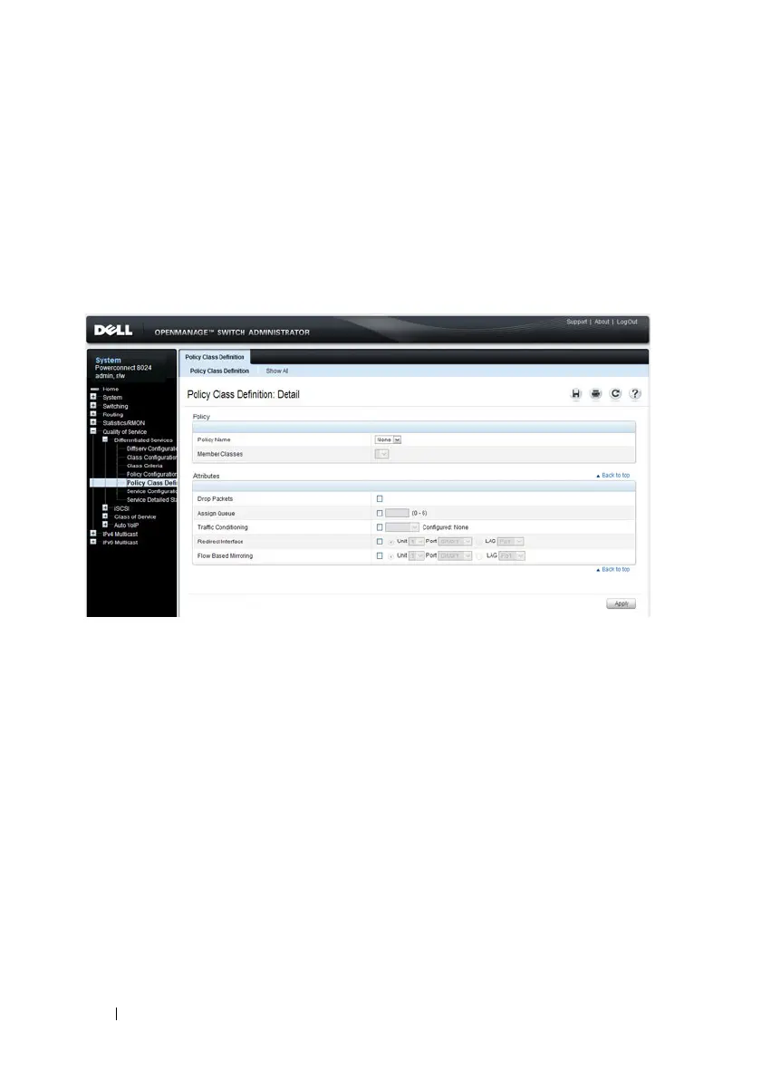 DiffServ Policy Class Definition page to associate a class to a policy,