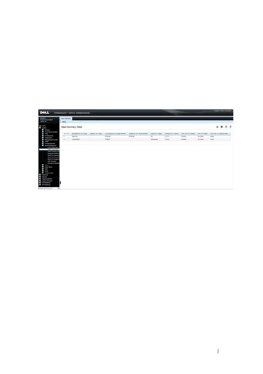 Use the Stack Summary page to view a summary of switches participating in