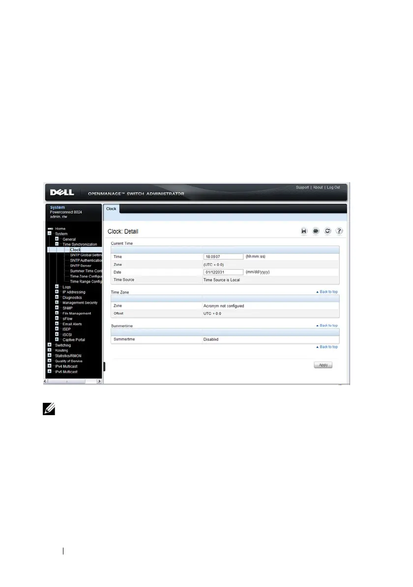 NOTE: The system time cannot be set manually if the SNTP client is enabled. Use