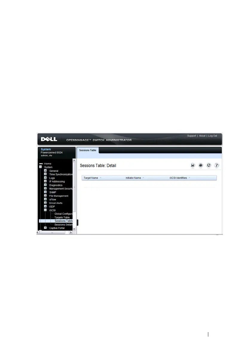 sessions that the switch has discovered. An iSCSI session occurs when an