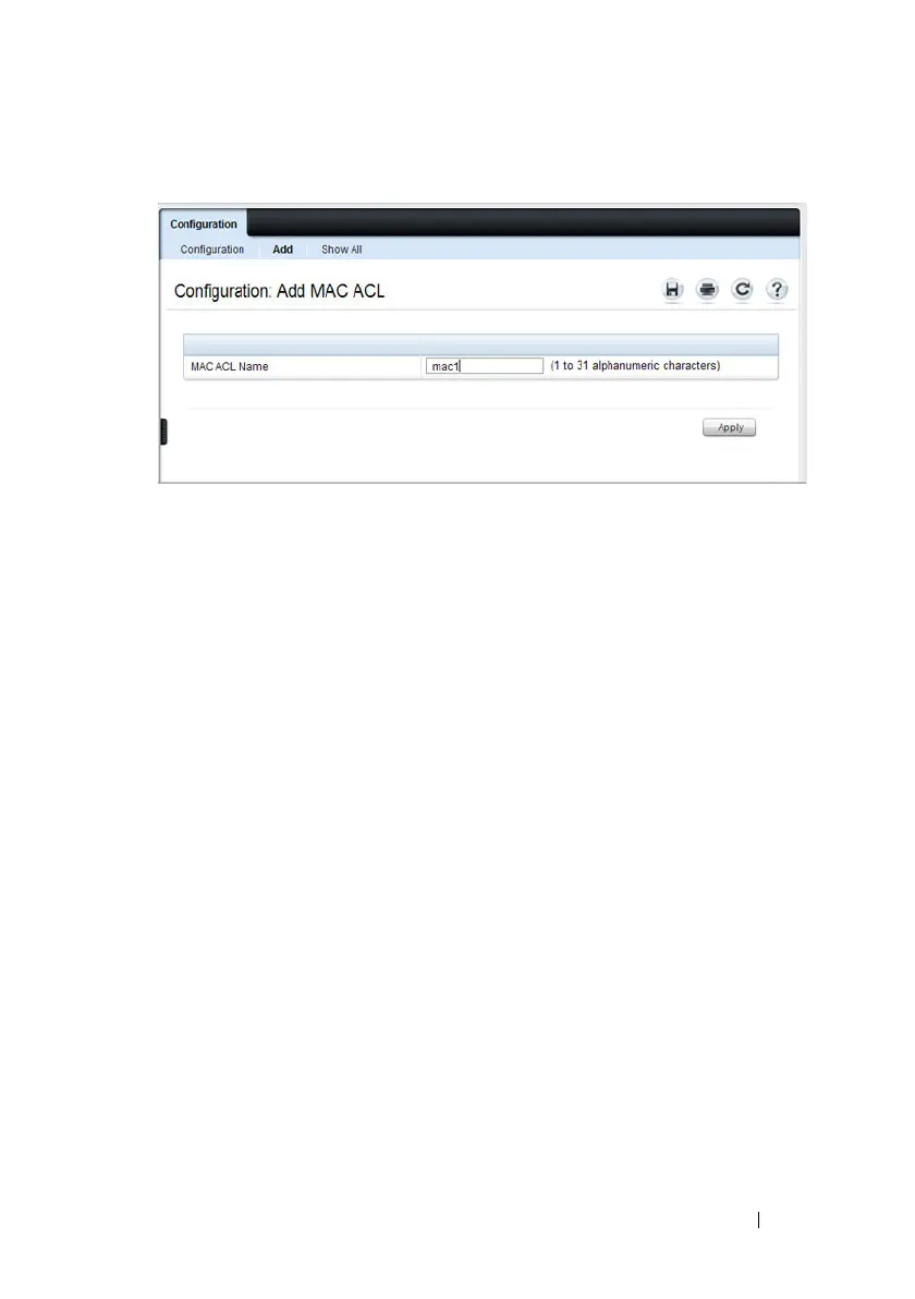 To view configured ACLs, click Show All from the MAC ACL Configuration