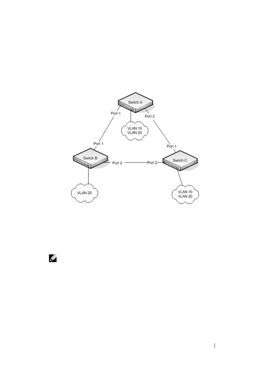 NOTE: Even Switch B does not have any ports that are members of VLAN 10,