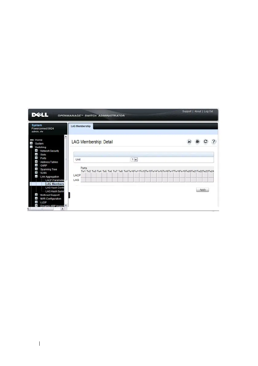 LAG Membership page to assign ports to static and dynamic LAGs.